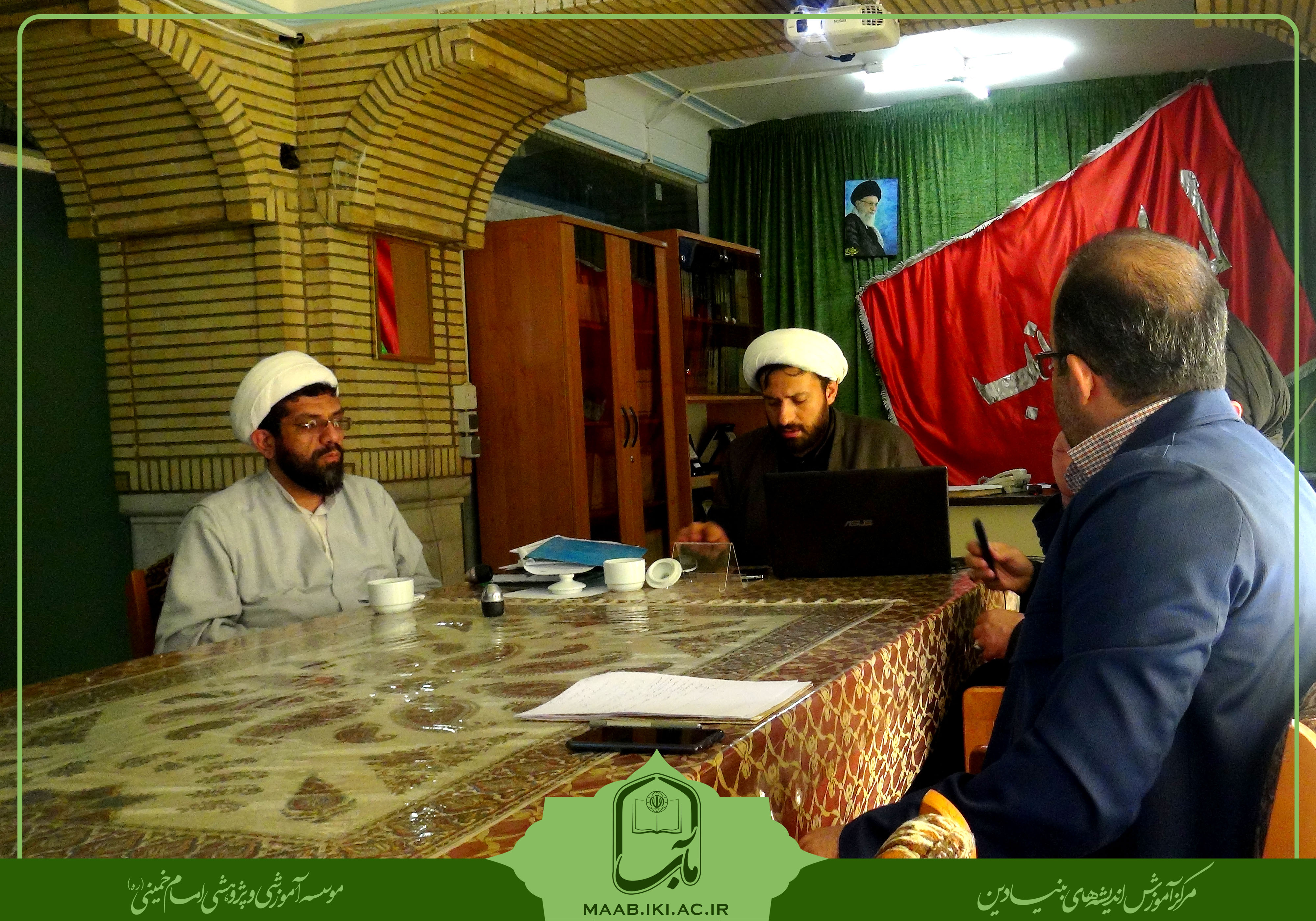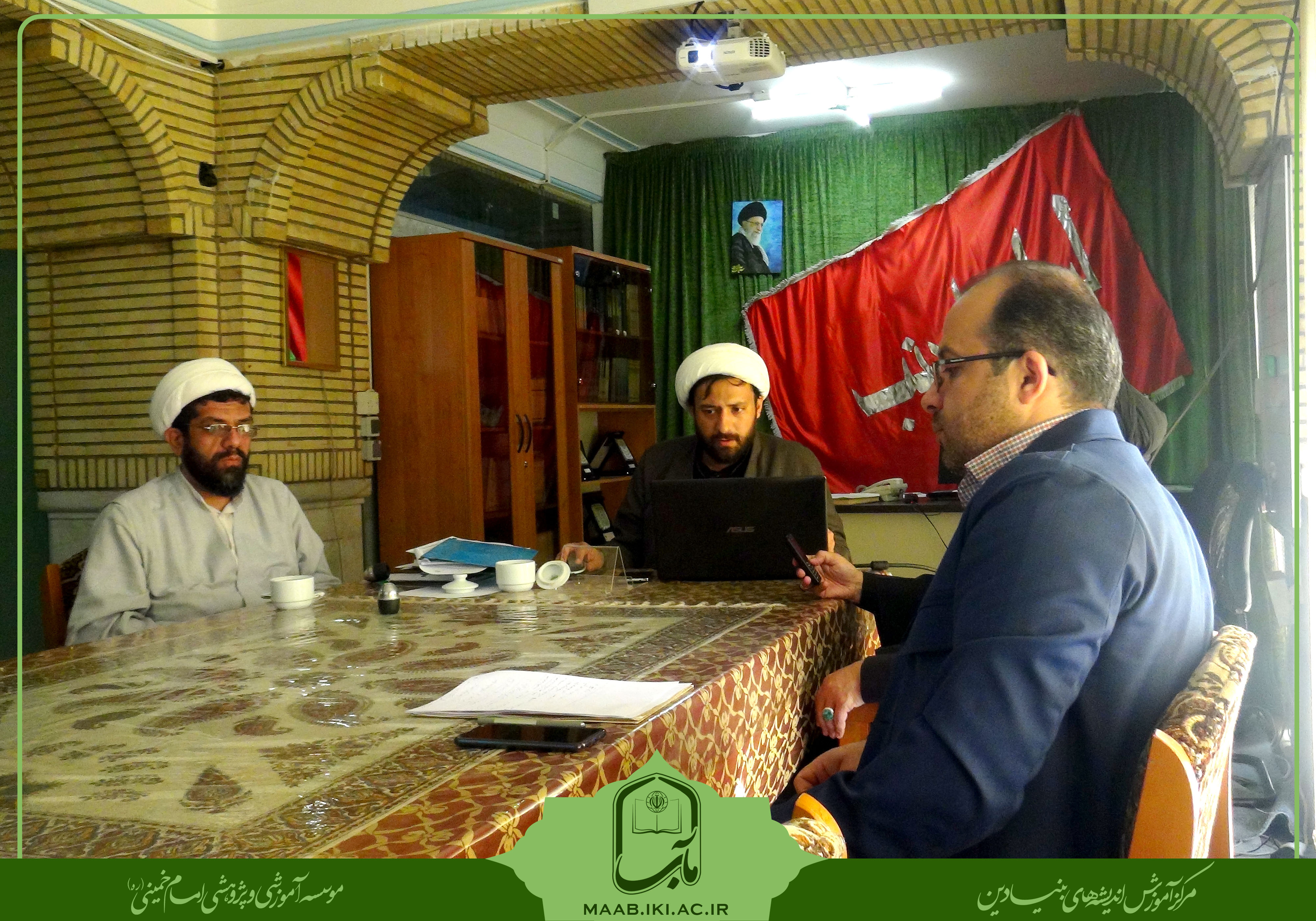 در این جلسه که با حضور مسئول محترم مرکز مآب؛ حجت الاسلام والمسلمین دکتر ابوطالبی، مسئول آموزش مرکز مآب؛ حجت الاسلام ابوترابی، سرهنگ قاسمی و حجت الاسلام والمسلمین علائی معاون آموزش و تربیت سازمان عقیدتی- سیاسی نیروی انتظامی جمهوری اسلامی در مرکز مآب؛ موسسه ی آموزشی و پژوهشی امام خمینی (ره) برگزار گردید در مورد برگزاری دوره ی آموزش اندیشه های بنیادین برای کارمندان سازمان عقیدتی سیاسی ناجا به گفتگو پرداخته و تصمیم گیری کردند.