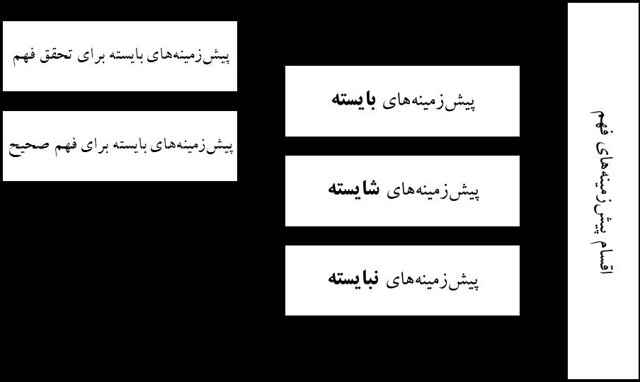 پیشزمینههای فهم را میتوان به سه دستۀ بایستهها، شایستهها و نبایستهها تقسیم کرد: