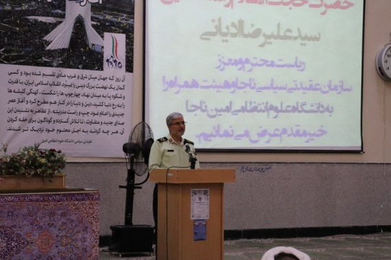 رئیس سازمان عقیدتی سیاسی ناجا در مراسم افتتاحیه طرح ولایت دانشگاه امین نیروی انتظامی ضمن تقدیر از زحمات سردار فرمانده محترم دانشگاه علوم انتظامی امین گفت : خرسندیم که این طرح با همت دانشگاه و دست اندر کاران آن اجرایی شد و صمیمانه از سردار بختییاری و کادر دانشگاه علوم انتظامی امین که تلاش می کنند تا دانشجویان و کادر پلیس در تراز انقلاب اسلامی تربیت شوند تشکر می کنم.