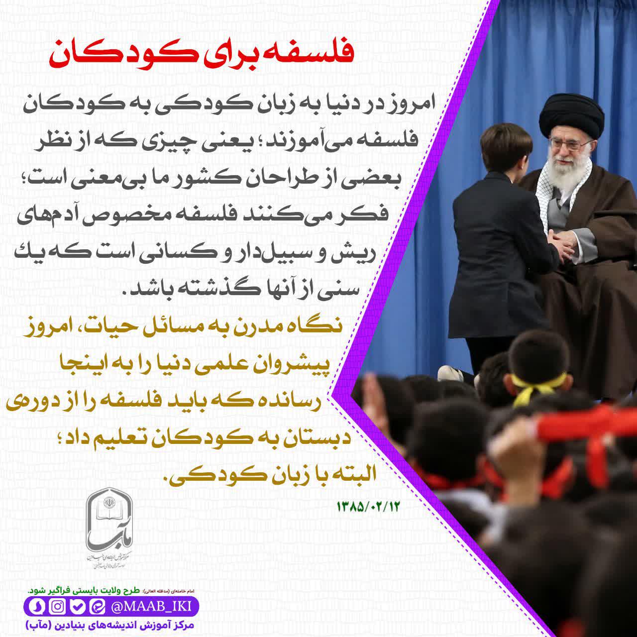 نگاه مدرن به مسائل حیات، امروز پیشروان علمی دنیا را به اینجا رسانده که باید فلسفه را از دورهی دبستان به کودکان تعلیم داد؛ البته با زبان کودکی. 1385/2/12