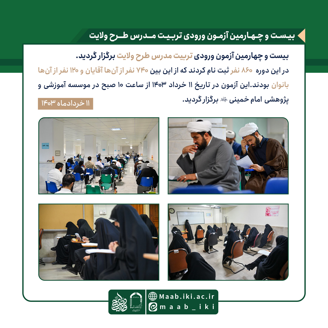 بیست و چهارمین آزمون ورودی تربیت مدرس طرح ولایت برگزار گردید.